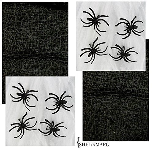 Halloween Black Creepy Cloth with Spider Webbing by Shel&Marg. 2 Packs of Each. Perfect Halloween Decoration Set.