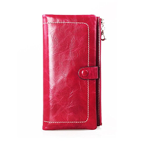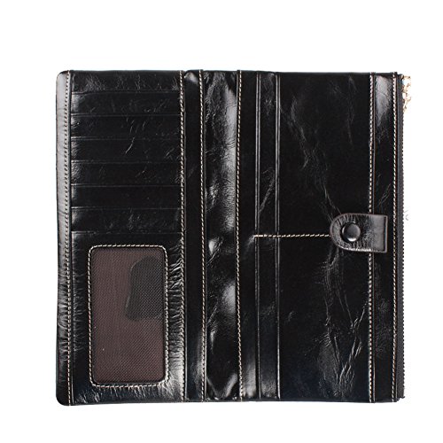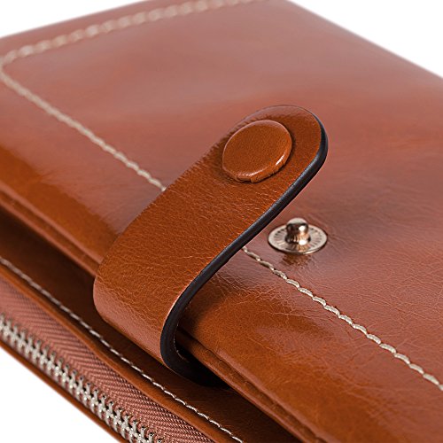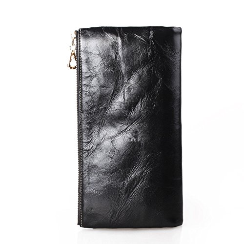 -. Feature : High quality genuine cow leather, the wax paper makes the wallet generous and elegant / Zip-around top and snap-button tab closure / Contains three generous full-length pockets, one zippered pocket, two bill compartment pockets, and ten credit card slots. One photo slot. Easily hold your cell phone, credit cards, coins and other stuffs / New design and excellent protection case cover. A great gift idea / Fit most occasions like gathering or casual use