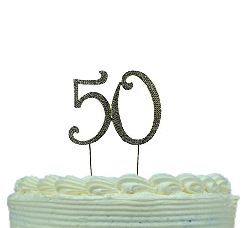 PREMIUM QUALITY CAKE TOPPER is sturdy as it’s constructed from metal alloy. GENUINE CRYSTAL RHINESTONES cover the front side of the 50 cake topper. Captures light beautifully as it adds to the sparkle of your special day!