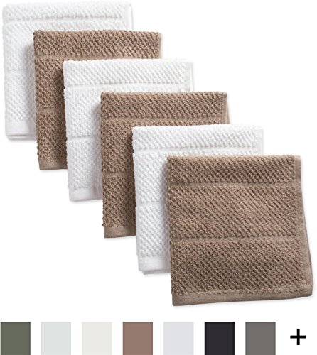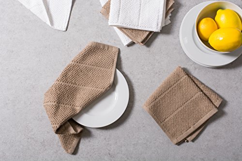DII Cotton Luxury Chef Terry Dish Cloths, 12 x 12" Set of 6, Ultra-Absorbent Cleaning Drying Kitchen Towels-Stone Taupe/White