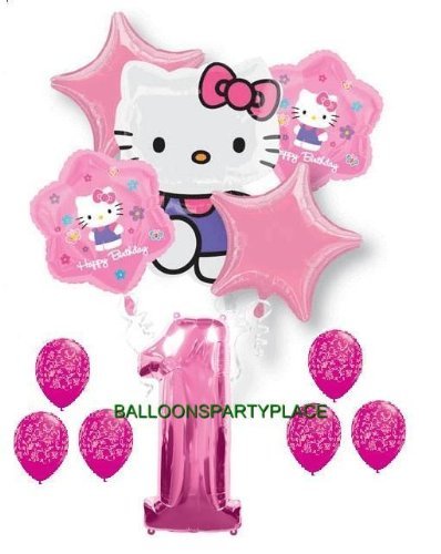 -. Title : HELLO KITTY PINK PURPLE 1st birthday damask party balloons first supplies girls by Lgp