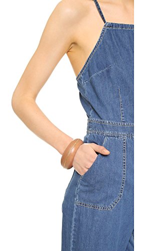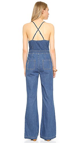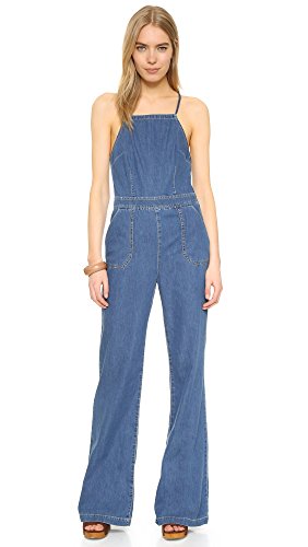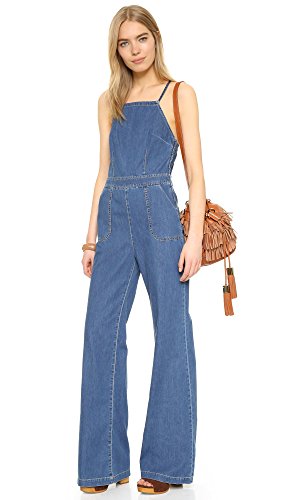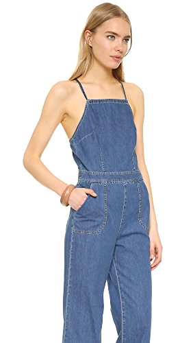 A Paige Denim jumpsuit with a relaxed silhouette. Slant hip pockets and patch back pockets. Adjustable shoulder straps. Hidden side zip.