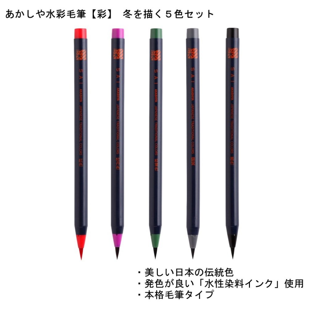 Akashiya Fude Brush Pen Sai 5 Winter Color Set (CA200/5VD)