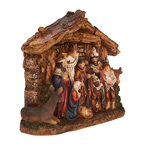 Studio : Juvale Publisher : Juvale Binding : Kitchen Product Description This figurine brings the nativity scene to life with its depiction of Baby Jesus in a manger, Saint Joseph, the Virgin Mary, the Three Wise Men, a shepherd carrying a lamb, an angel, an ox and a donkey. Perfect for Christmas or as a decoration year-round. The flat base allows for versatile placement options. Excellent gift for Christians of all denominations. Resin figurine is hand-painted. Measures 6 x 4.5 x 1.6 inches. 0