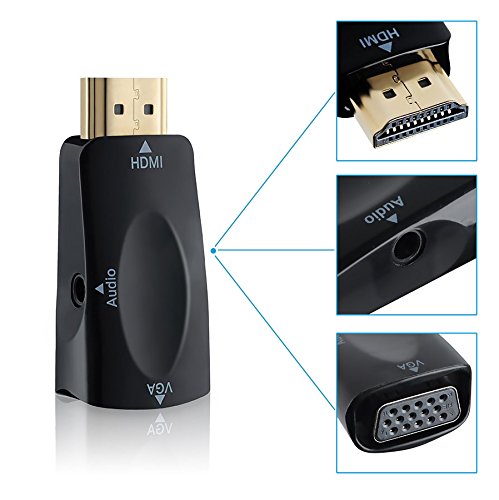 HDMI to VGA, Splaks Tiny Portable HDMI TO VGA with Audio Adapter Male to Female with 3.5mm Audio Output for PC Laptop Power-Free, Raspberry Pi Laptop ,Projector,HDTV,PS3,Xbox STB Blu-ray DVD