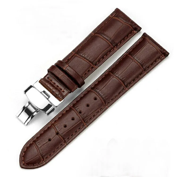 내구성 스트랩 남성 정품 가죽 시계 스트랩 18 미리메터 20 미리메터 22 미리메터 24 미리메터 소 시계 밴드 스테인레스 스틸 푸시 버튼 숨겨진 걸쇠