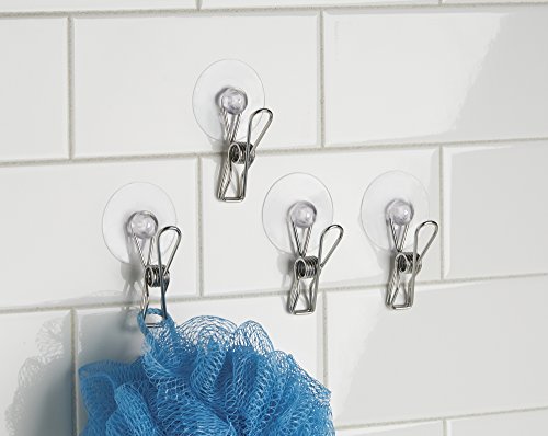 mDesign Suction Storage Clip for Kitchen, Laundry Room, Bathroom (Set of 4) - Clear/Polished Stainless Steel
