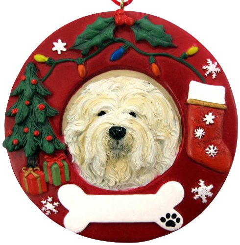 Lhasa Apso Christmas Ornament Wreath Shaped Easily Personalized Holiday Decoration Unique Lhasa Apso Lover Gifts