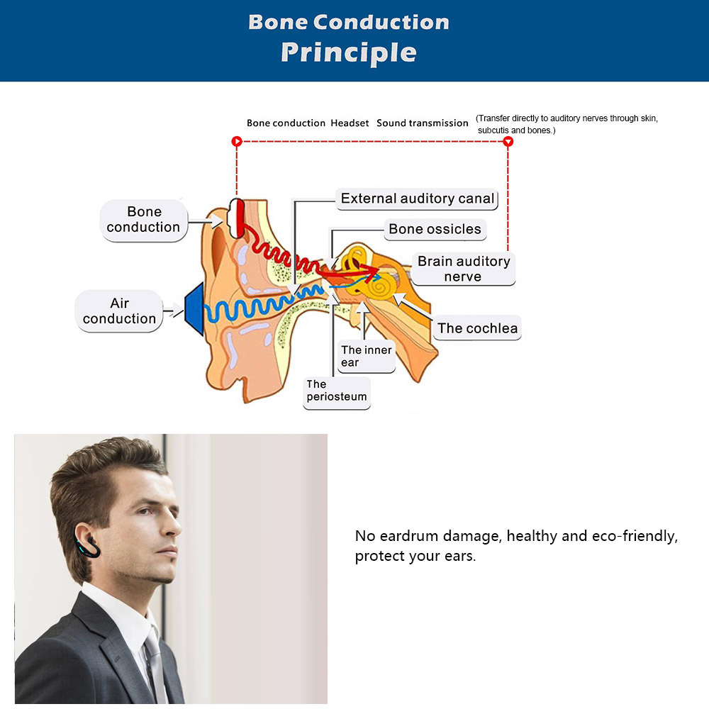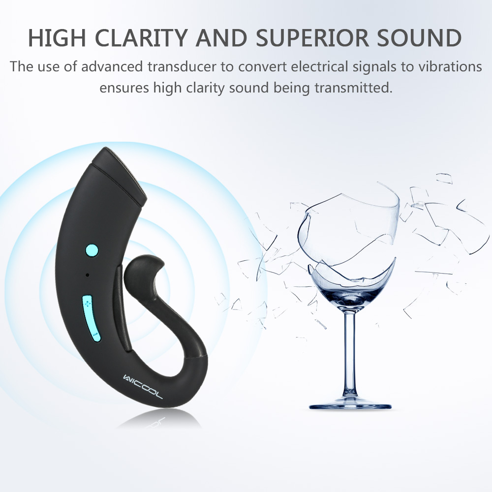 REVOLUTIONARY BONE CONDUCTION TECHNOLOGY - This revolutionary Bluetooth headset uses advanced bone conduction technology to transmit music to the internal ear through the cranial bones - thus eliminating the need to put the headphones directly into your ears and the possibility of impairing your hearing capability. This is achieved by converting sound into vibrations.