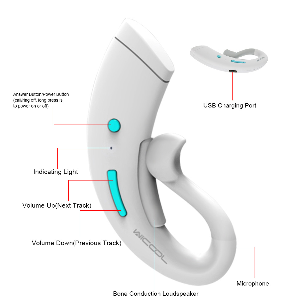 This WICOOL Bone Conduction Bluetooth Headset lets you Listen to your music and your surroundings simultaneously. Enjoy the music also can be heard around the environmental sound, always keep alert. You can also keep in touch, prevent accidents. Sound waves are transmitted at a frequency that can be conducted through the bones of the skull. Your ears remain free, therefore you get to hear twice as much, without compromising on comfort, quality or style. This product will give you a better life, you deserve it. Using innovative bond conduction technology, the headphone conducts the speaker through the bone and transmits sound to the bone near the external canal, then to auditory nerve. It avoids the occurrence of ear damage and hearing losing, giving your healthy listening. With this Bone Conduction headphone, you can answer the incoming call, listen to music while walking, running, climbing, skating, diving, etc.