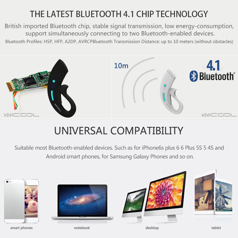 2016 WICOOL Bluetooth V4.1+EDR Headset Bone Conduction Sports Running Sweatproof Wireless Headphones Sweat-proof Hands-free Mic