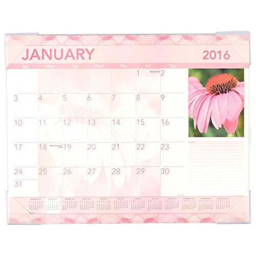 - Feature : Monthly desk pad is the perfect visual planner to display on your desk top. 12 month date range runs from January - December, with a different striking floral image is displayed each month, sure to brighten your work space. / Desk pad displays one month at a time with a lined note taking area under the floral image, plenty of writing space on each page for your notes, appointments and deadlines / 2.19 in. x 2.19 in. daily blocks are unruled to allow space for your notes / Full year calendar is at the bottom of each page for fast future date reference and includes bonus pages with current and future yearly reference calendars and dates to remember page for long range planning / Desk pad has four poly corners and the paper made from 30% post-consumer waste recycled material. Page size 22 in. x 17 in. Overall size 22.063 in. x 17.13 in.13 in.