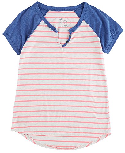 Poof Juniors Baseball Stripe Raglan Top Small Blue/pink