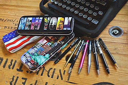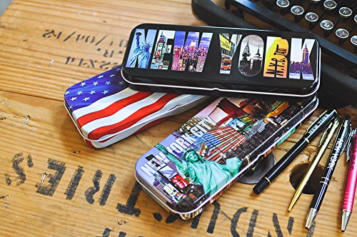 Black NEW YORK Letter Photos - New York City NY Souvenir Multi Purpose Stationery Box Steel Pencil Case