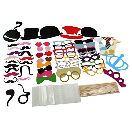 Generic Photo Booth Props 60 piece DIY Kit for Wedding Party Reunions Birthdays Photobooth Dress-up Accessories