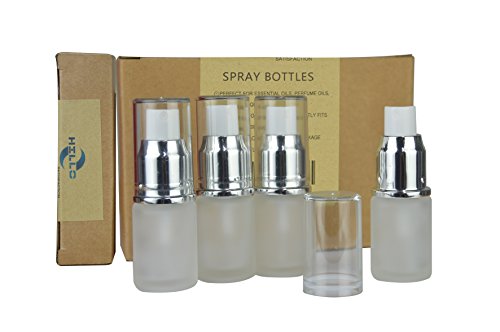 4 Piece 1/2oz,HILLO Silvery Glass Spray Bottles with Fine Mist Sprayer For Travel and Any Purpose ,Perfect for essential oils, perfume oils, rubbing alcohol, or other liquids.