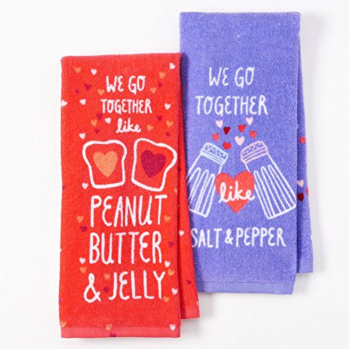 Happy Valentine's Day Velour Kitchen Dish Towels 2 Pack, "We Go Together"