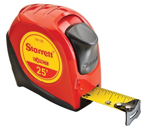 Starrett Exact KTX1-25-N ABS Plastic Case Red Measuring Pocket Tape, English Graduation Style, 25' Length, 1" Width, 0.0625" Graduation Interval