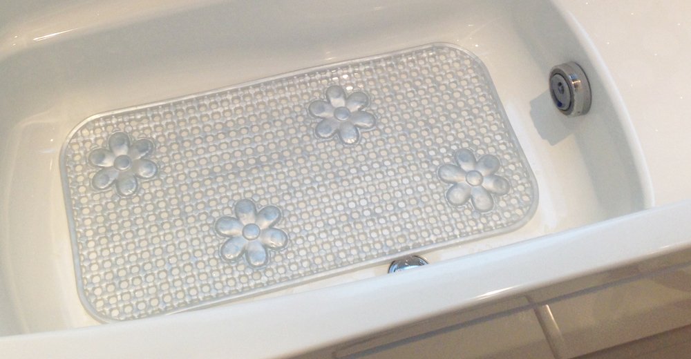 IZMAR's non-slip bath mat uses cushioning PVC (polyvinyl chloride).