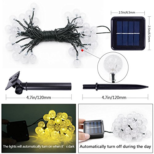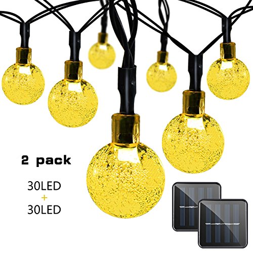 Binval 2-Pack Solar Fairy Crystal String Lights for Outdoor Patio Lawn Landscape Garden Home Wedding Holiday and Christmas decorations[19.7feet - 6m - 30LED-Warm White]