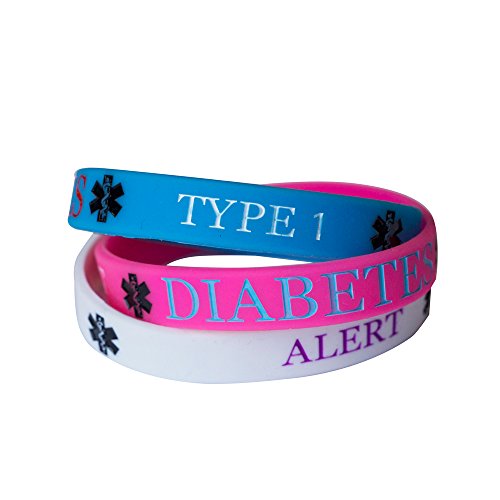 -. Feature : Text on bands "ALERT TYPE 1 DIABETES" / Pack of 3 Wristbands: 1 x white band, 1 x blue band, 1 x pink band / Standard Size - 202MM / Comfortable, Durable, Flexible and Waterproof / Perfect for day to day wear and sports