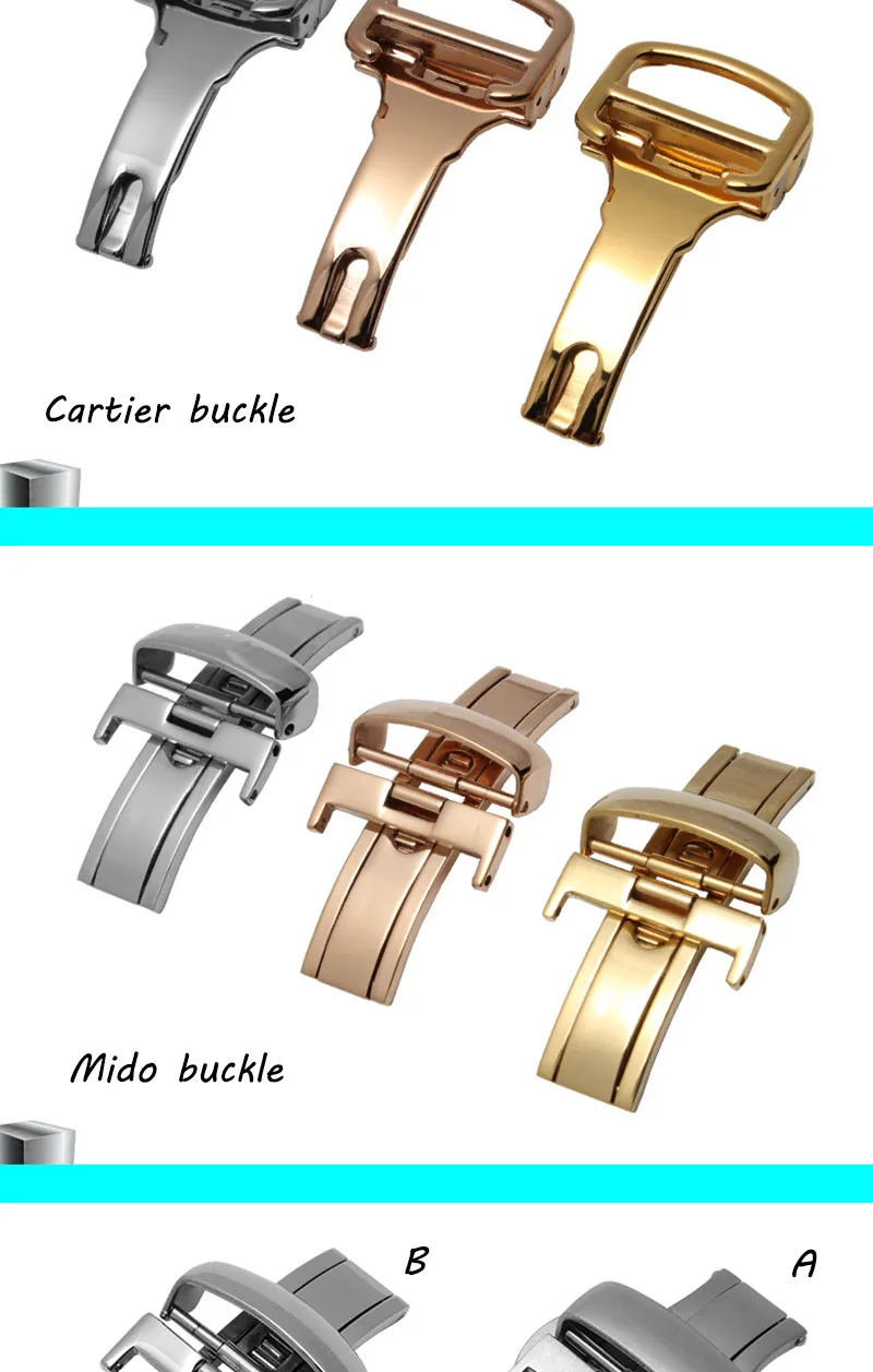 Uyoung 손목 브랜드 특별 테이블 버클 12 미리메터 14 미리메터 16 미리메터 18 미리메터 20 미리메터 블랙 실버 솔리드 스테인레스 스틸 접이식 버클