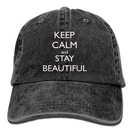 (YanHIng)/Accessories/Hats/DIRECT FROM USA/YanHIng Keep Calm and Stay Beautiful -Adjustable Washed Cap Cowboy Baseball Hat Black