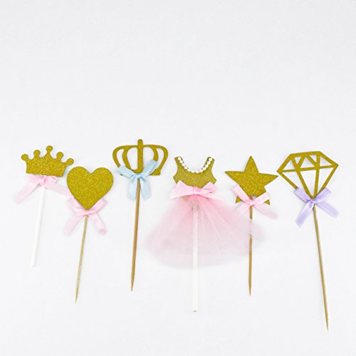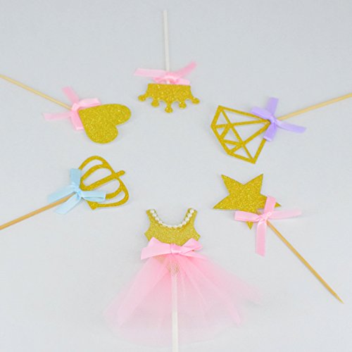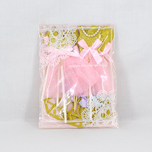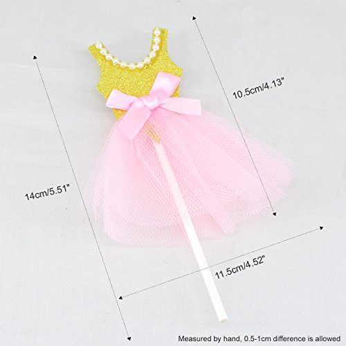 Princess Themed Gold Glitter Tutus Dress Ballerina Skirt Cake Toppers for Baby Shower Birthday Party Kids Cupcake Decoration Pack of 12
