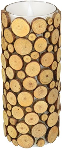simplux Moving Wick Wood Pattern Mosaic Flameless LED Candle with Timer, 3 x 6", Brown