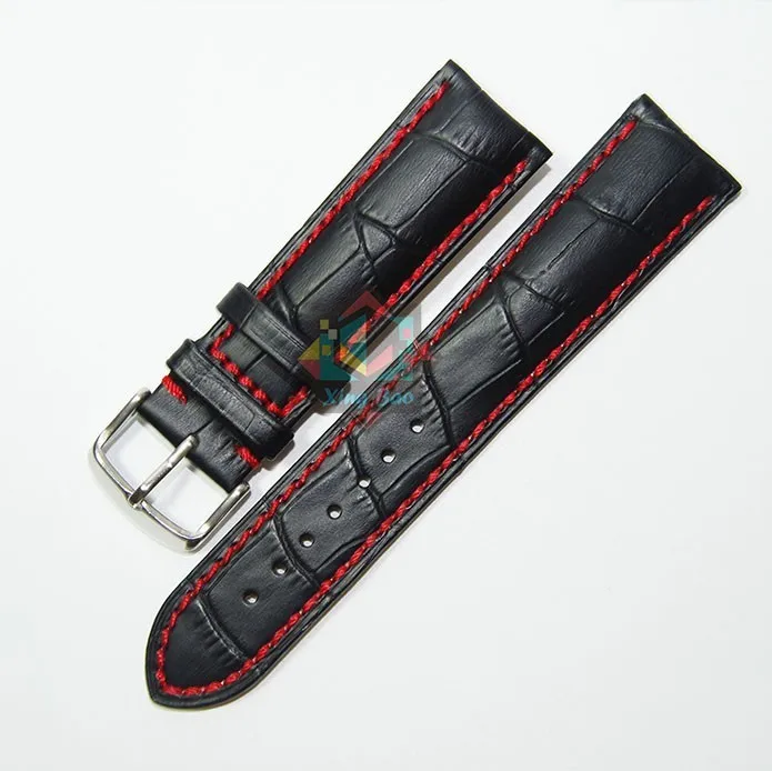 20 mmNew 블랙 정품 가죽 손목 시계 밴드 스트랩 팔찌 레드 스레드