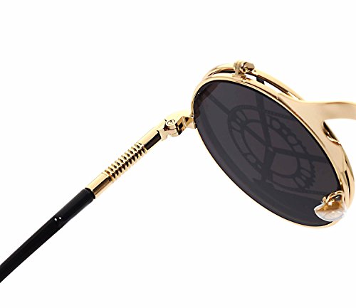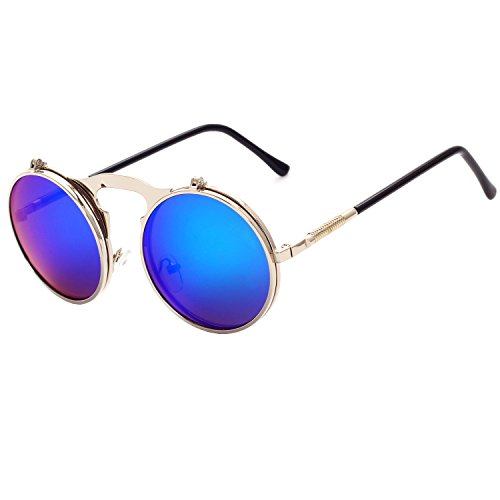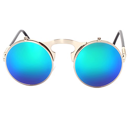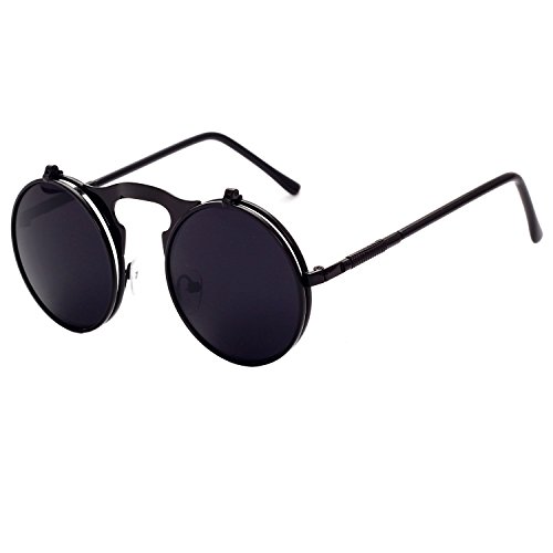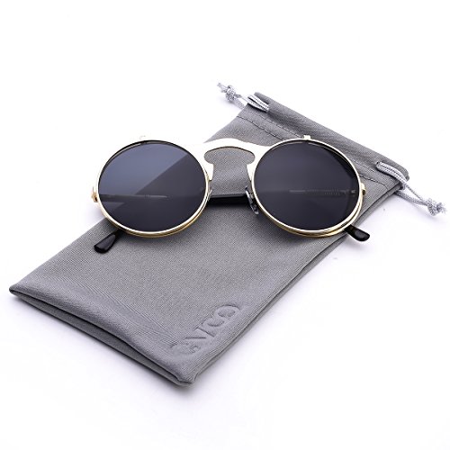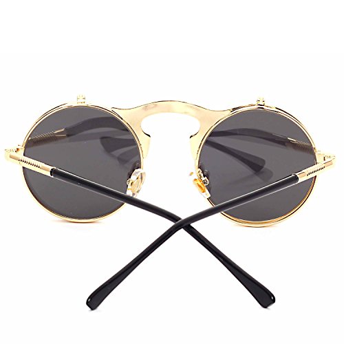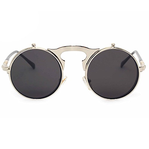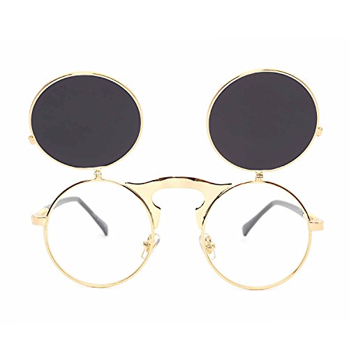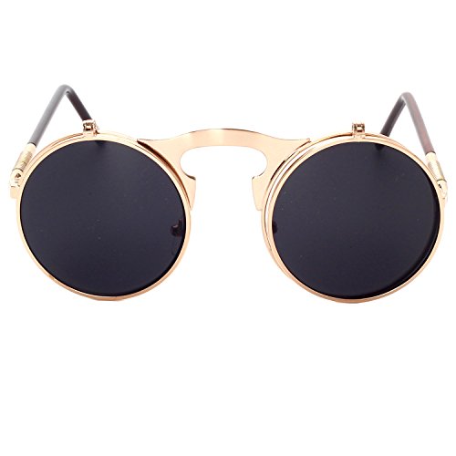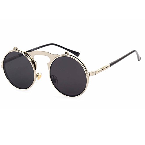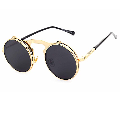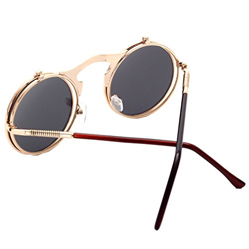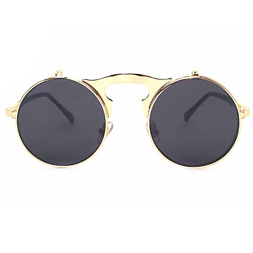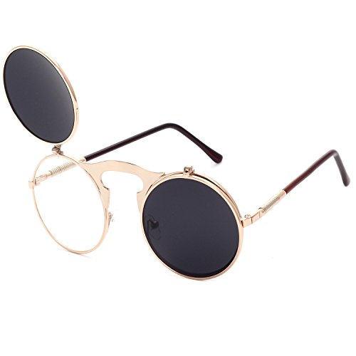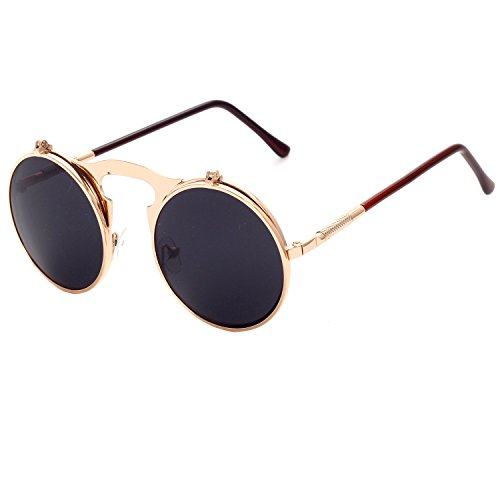 CVOO Cvoo Gothic Retro Steam Punk Round Flip Up Metal Sunglasses For Women/Men