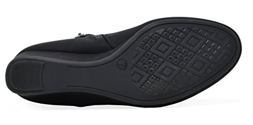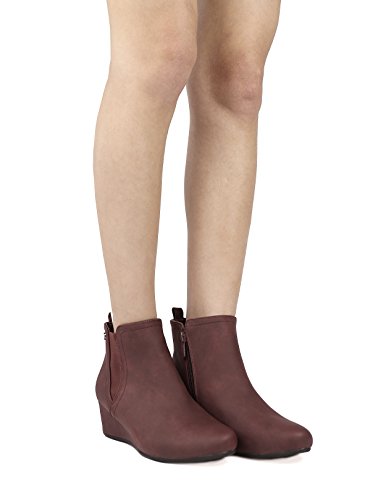 Product Description Be warm and stunning with these adorable heel booties! A Great And Comfortable Design. This boot features an round toe, low wedge design. The booties also has a leatherette upper, a striped lining, and a side zipper for easy on/off. 0