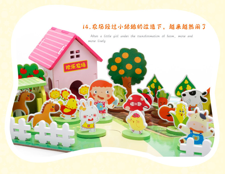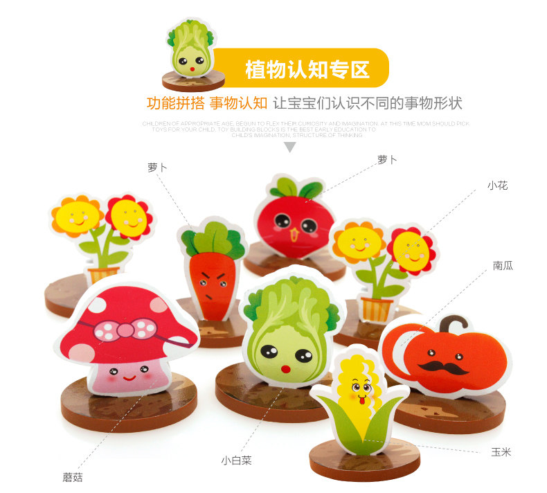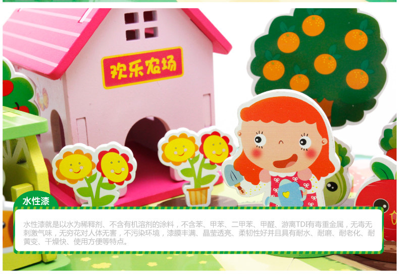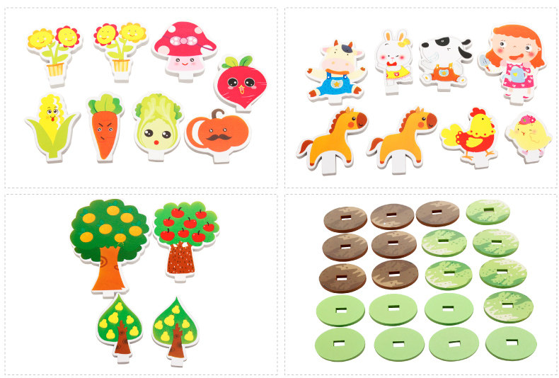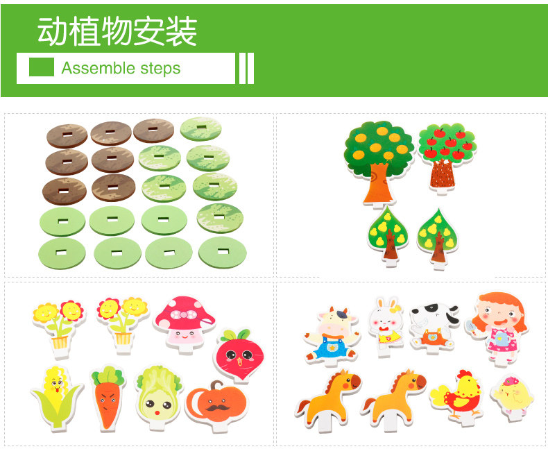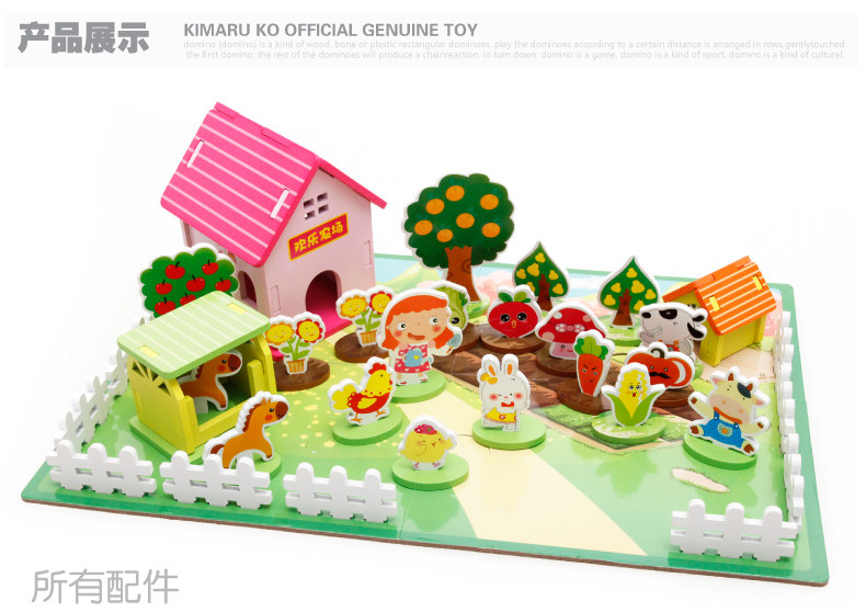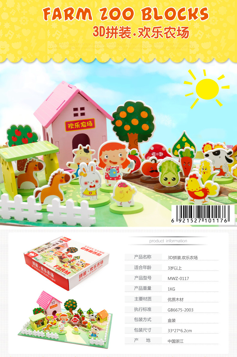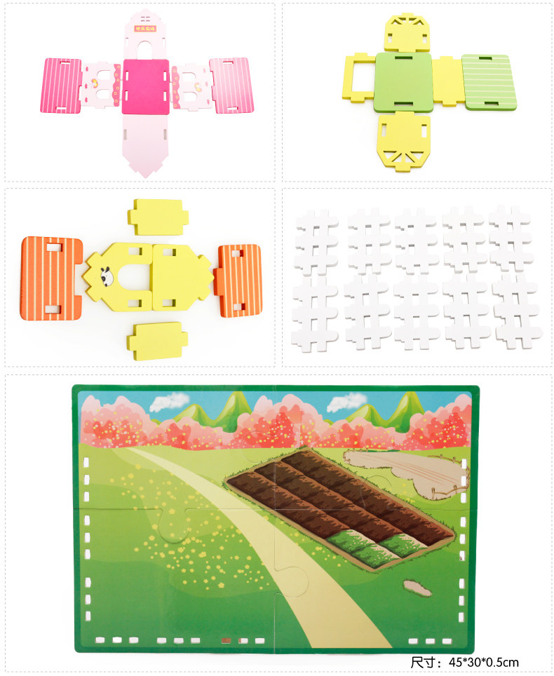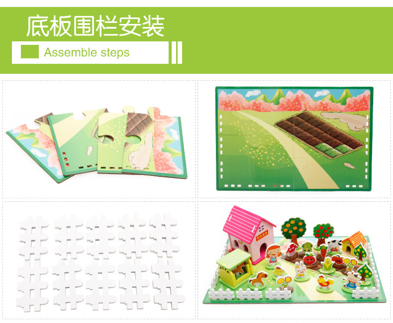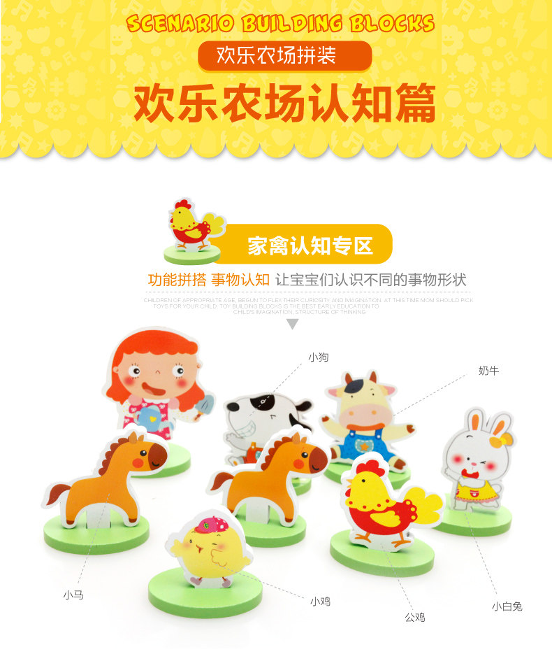 3D拼插农场积木制幼儿童益智力立体拼装图板男宝宝女孩玩具