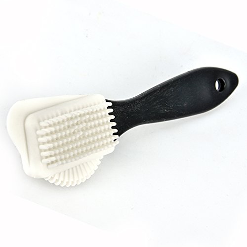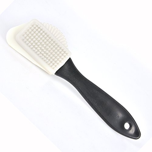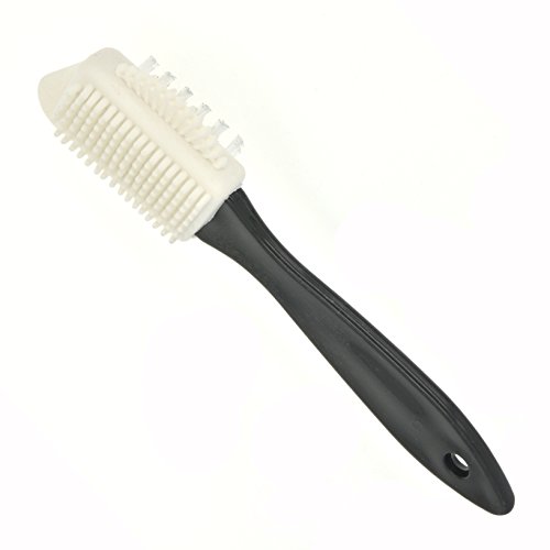 - The brush has 4 different cleaning surfaces. One side has silicone brush, it strong yet gentle, use it on heavier scuff marks and stains. The opposite side is the nylon bristles and use it on lighter scuffs and stains. The corner brush makes it easy to reach hard to reach areas. The arched half circles is helpful for rounded corners.