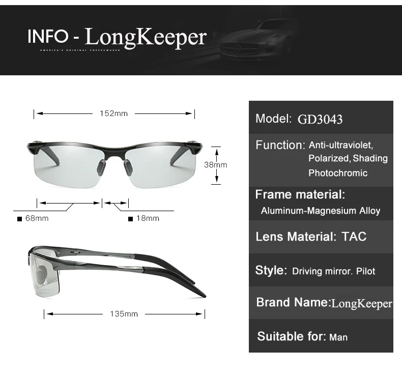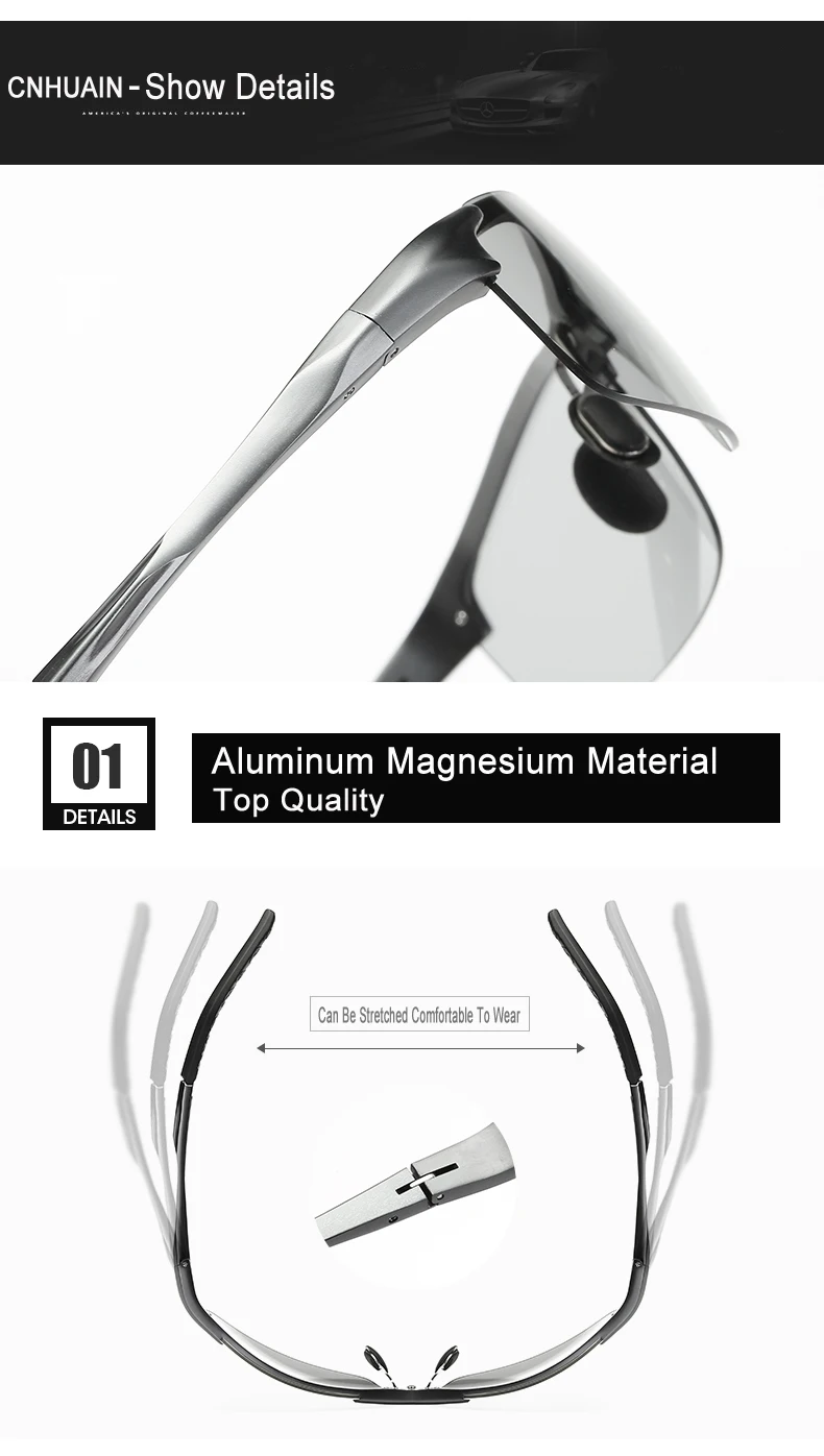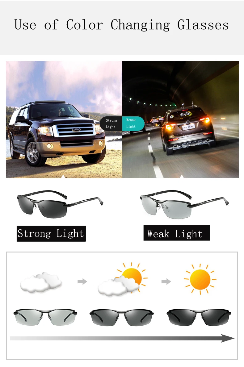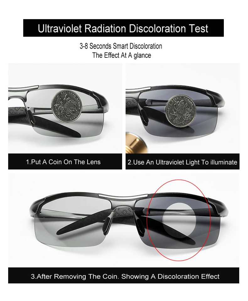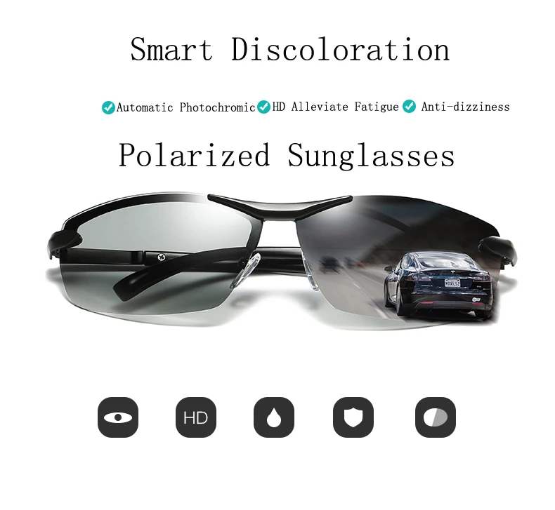 Function:UV protection, anti-glare, anti-vertigo,Photochromic Sunglasses
