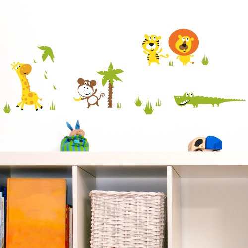 Wandkings wall stickers Colourful Jungle Animals Sticker Set – 28 stickers on 2 US letter sheets (each 8.3 x 11.7 inch)
