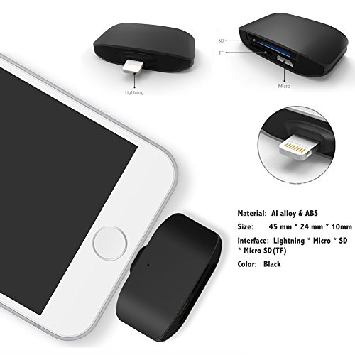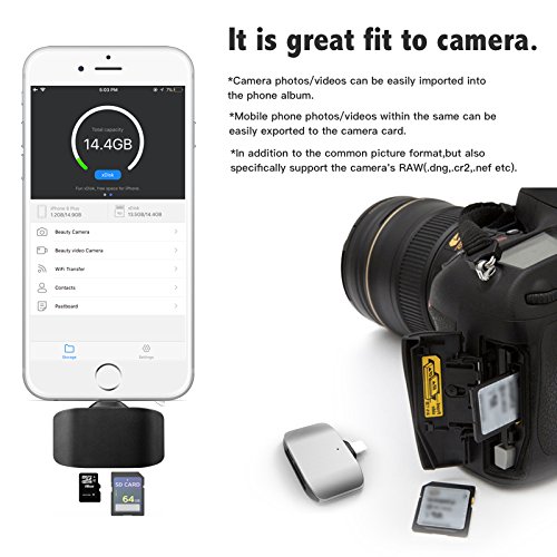 Descriptions: Designed for use of SD and micro-SD memory cards with read and write capabilities, the xDisk Card Reader offers the speeds that professional photographers and videographers need to quickly download high-resolution photos and HD videos. It offers total compatibility with iOS for seamless internal connectivity and wide media format support, and puts up to 128GB as storage expansion to iOS devices for fast and smooth content movement between your favorite platforms: smartphones, tablets, digital cameras, computers and more. Features: SD card reader: USB A 2.0 high speed data transferring up 480Mbps, Well compatible with all your computers, laptops and many other devices USB port. Micro SD card reader: OTG supported, No drives required. Read TF/SD card directly on your USB Type-C and Micro USB OTG supported devices. Adding an memory card, turns your card reader into a U Flash Disk. Portable and light design Easy and convenient for carrying in your laptop bag. Perfect matching kits for your new laptop.Feature