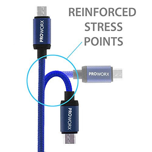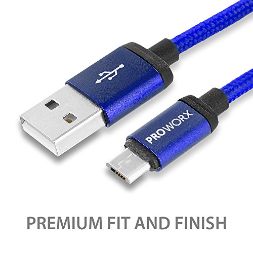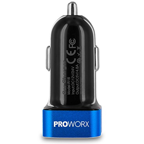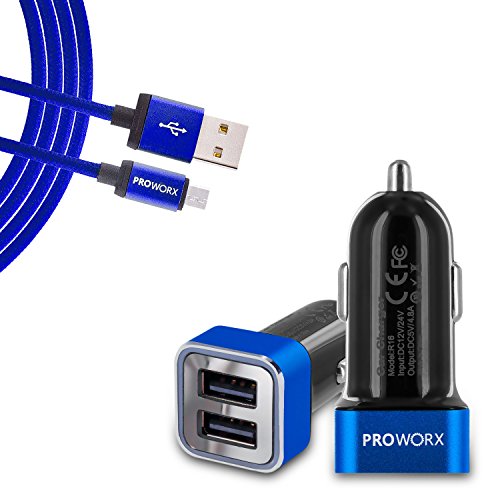 Dual Ports USB Car Charger, PROWORX 4.8Amp/24W Fast Rapid Charging Car Charger & Premium 3FT MICRO Cable Blue For Samsung, LG, Motorola, HTC, ZTE, Android Phones