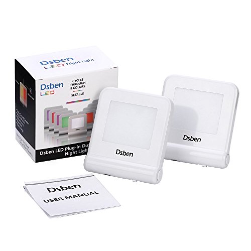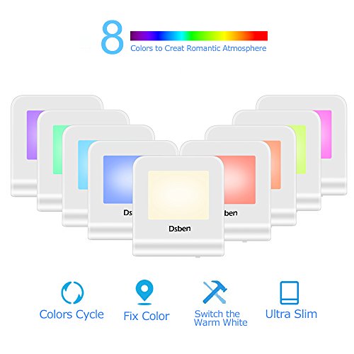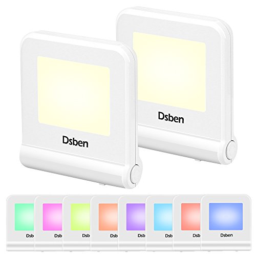 Dsben Plug-in LED Night Light with Dusk to Dawn Sensor, Warm White& 8 Colors Changing–Fix Single Color, 2 Pack