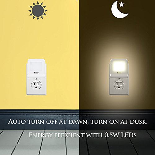 Auto Turn/Off: the nightlight automatically illuminate at dark and shut off at dawn. Energy efficient with 0.5W LEDs, it costs less than $3.2 annually.