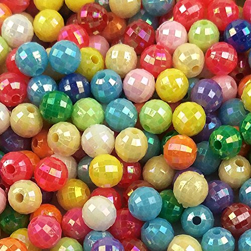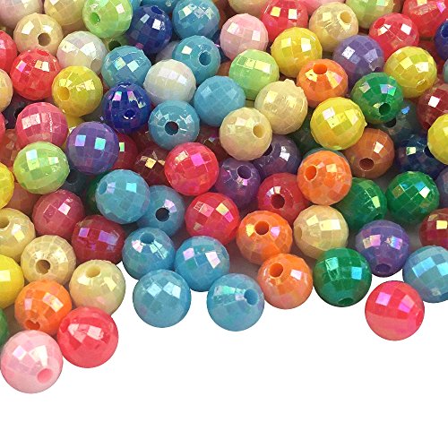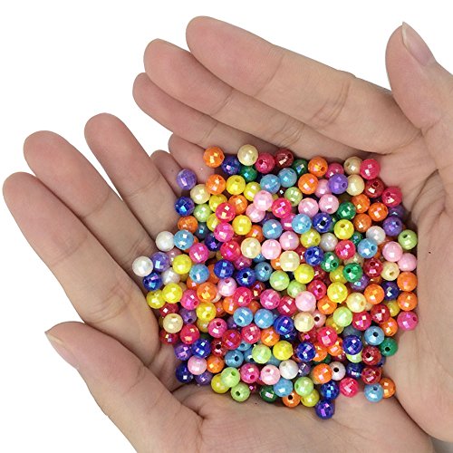 SHAN RUI 1000pcs 6mm Assorted Color Acrylic Round AB Color Spacer Beads, with 1 Black and 1 White Cord for Bracelets Jewelry Making