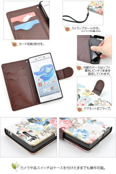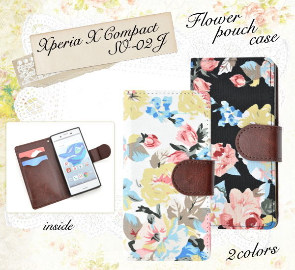 Xperia X Compact(SO-02J)用のエレガントなフラワーポーチケース。