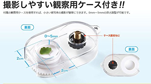 付属の観察用ケースを使用すれば、小さい被写体の撮影が簡単にできます。USBケーブルを接続するだけで簡単にデータ転送が可能です。