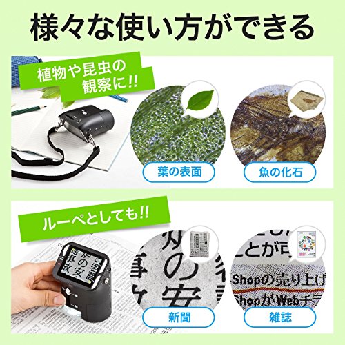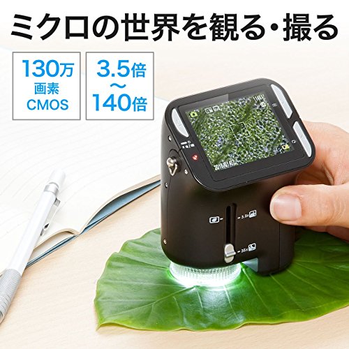 最大140倍の倍率で拡大できるモニタ付きのデジタル顕微鏡です。植物や昆虫の観察、美容チェックになど様々用途に使用することが出来ます。