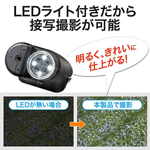3.5倍の倍率に設定すれば、ルーペとしても使用できます。LEDライトが4つ内蔵されているので、明るくきれいに撮影できます。