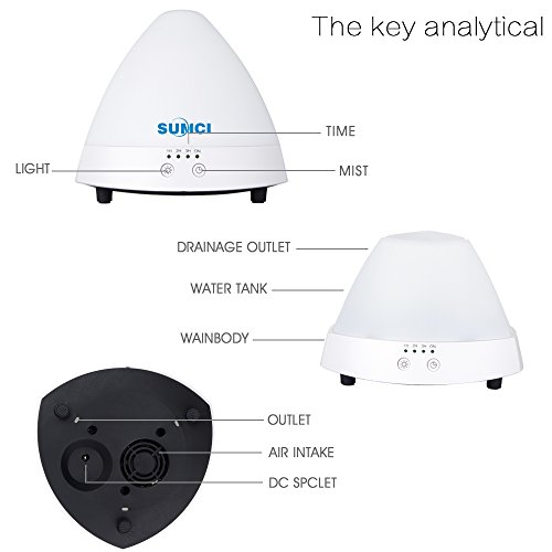 Sumci Ultrasonic Aromatherapy Oil Diffuser Humidifier, 7 Color Cozy Led Lights, Dry Automatic Power-off Function, Timing Function for the Baby Room, Office, Home, Yoga Room
