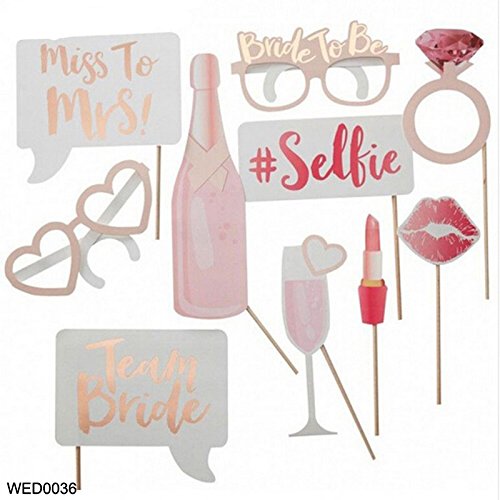 Bachelorette Party Bridal Shower Wedding Photo Booth Props -10pc Set - Rose Gold - Party Decorations Celebrations Girls Night Out