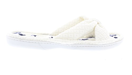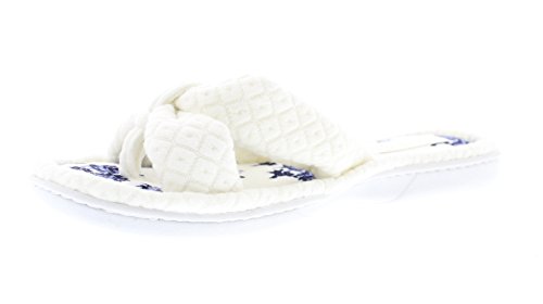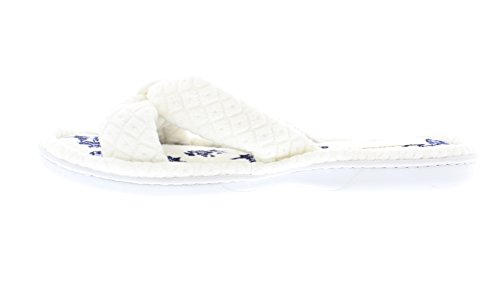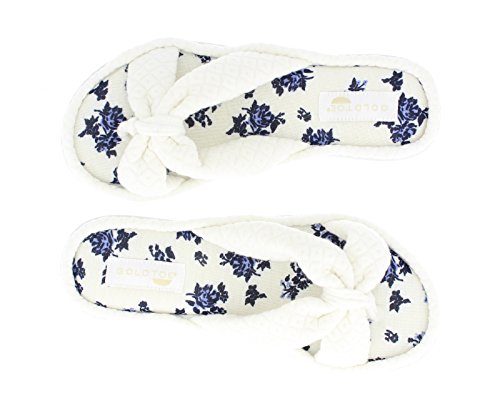 Gold Toe Women's Darcy Memory Foam Spa Thong Strappy Bow Plush Slip On Slipper White Floral XL