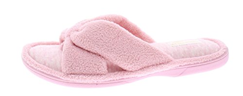Gold Toe Women's Darcy Memory Foam Microterry Fleece Spa Thong Plush Slip On Slipper (L 9, Light Pink Polka Dot)