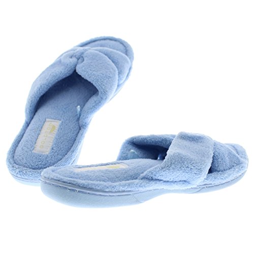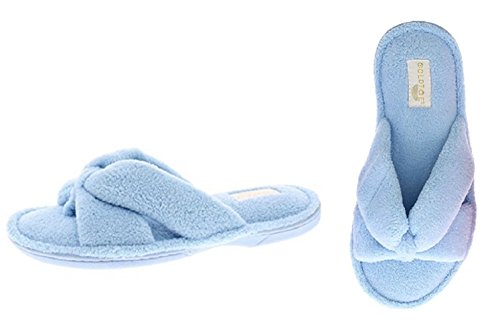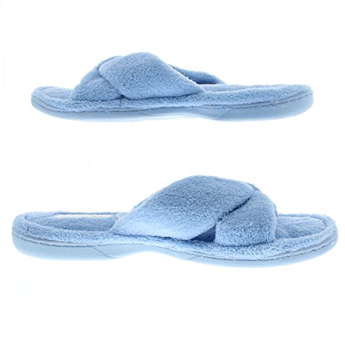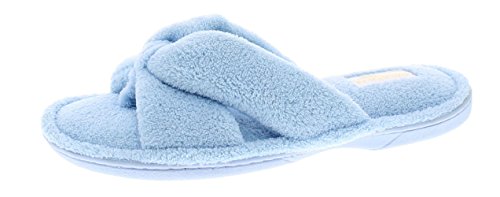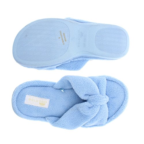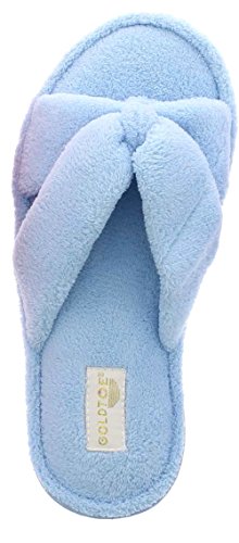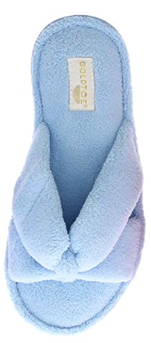 Gold Toe Women's Darcy Memory Foam Microterry Fleece Spa Thong Plush Slip On Slipper Lt Blue XL 10-11 US